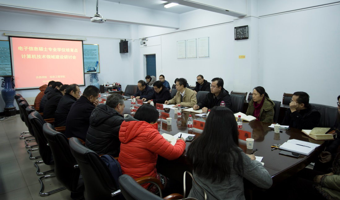 为加快“电子信息硕士专业学位培育点─计算机技术领域”和计算机科学与技术重点学科建设,深化联合研究生培养工作,促进科研团队建设,1月21日,信息工程学院在315会议室举办电子信息硕士专业学位培育点─计算机技术领域建设研讨会。华北水利水电大学物理与电子学院院长陆桂明、书记侯战海、副院长许丽、海燕老师、赵京晖老师和郑州轻工业大学计算机与通信工程学院副院长张素智、吴怀广老师、张秋闻老师应邀参加。会议由院长杜根远教授主持,学院领导班子和学科骨干教师、全体博士参加了此次研讨会。