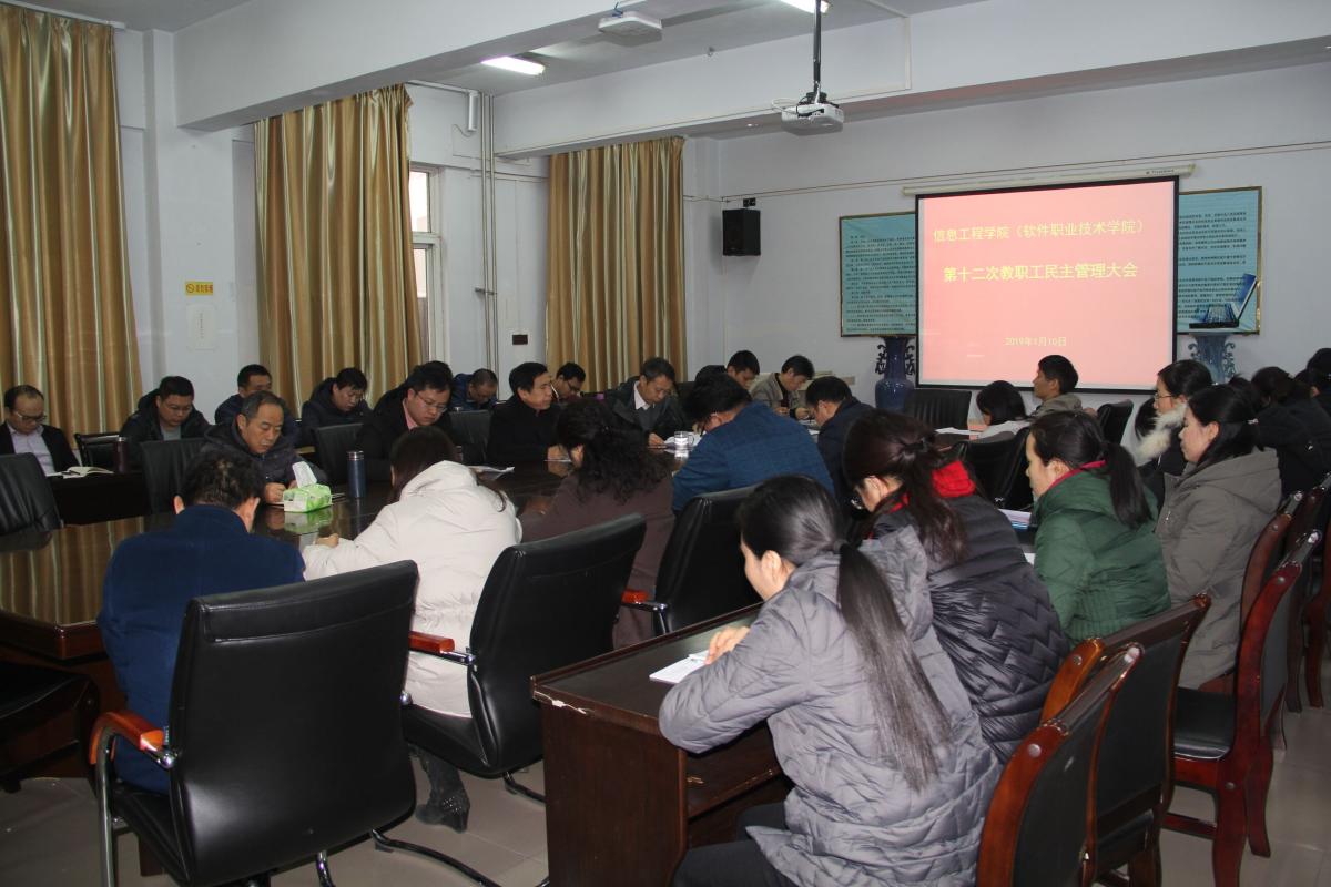 经过认真筹备,报经校工会批准,1月10日下午,信息工程学院、软件职业技术学院第十二次教职工民主管理大会在315会议室召开。全体教职工参加会议,党总支副书记梁衡主持会议。