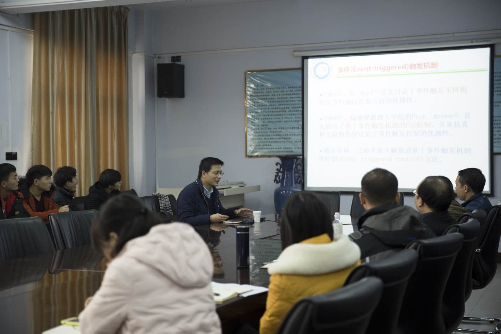 报告会上,严怀成教授全面阐述了网络控制系统的研究背景,事件驱动的思想在网络控制、无线传感器网络、多智能体协调等相关领域的应用,深入探究网络控制领域领域中的各种难题并且展望了事件驱动理论的研究前景。随后,严教授结合专业特点分享了申报国家自然科学基金的相关经验,从基金评审者的角度分享了申报自科基金的注意事项。