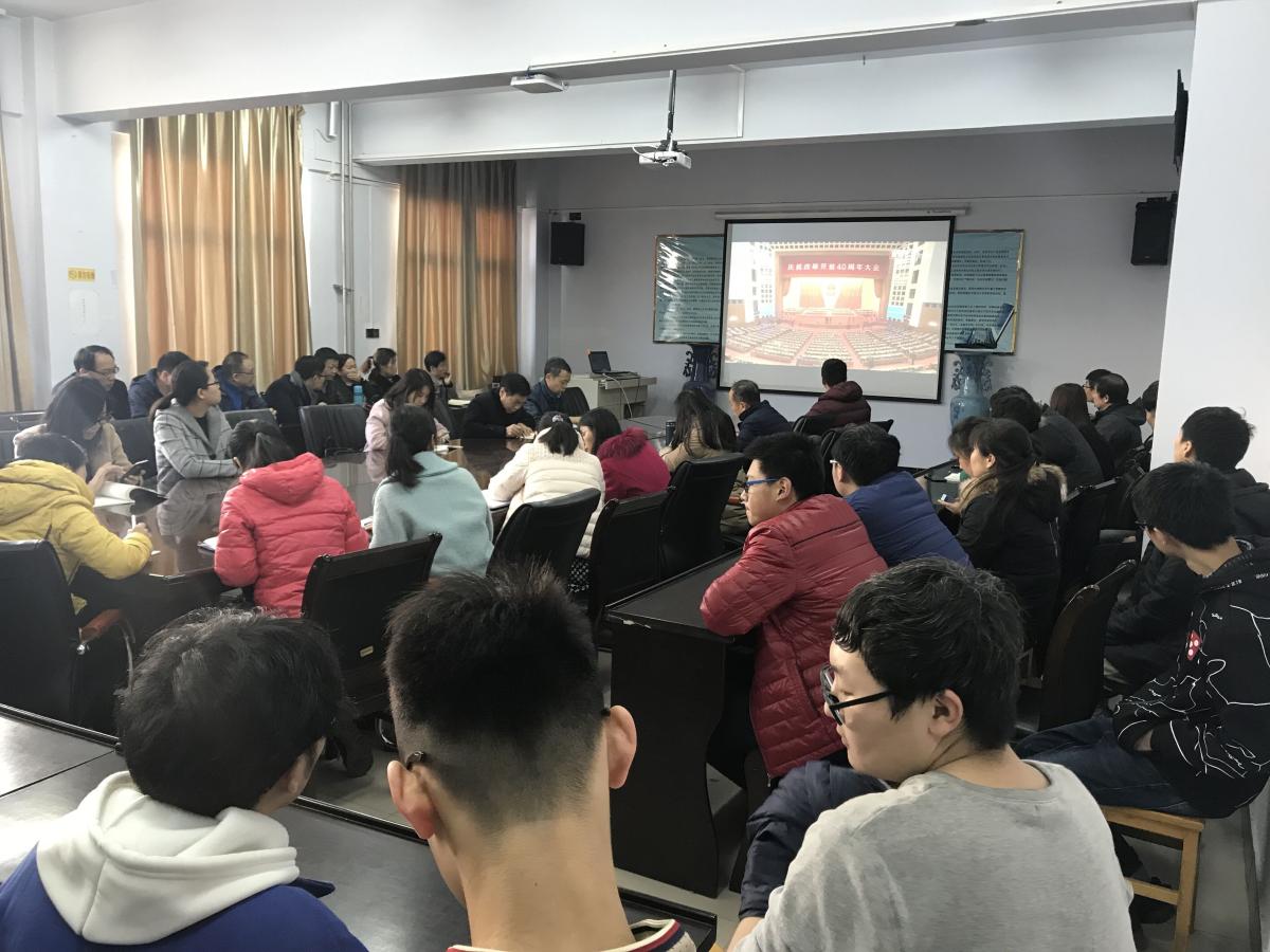 我院党总支把收看庆祝改革开放40周年大会作为一项重要的政治任务,高度重视,认真落实。精心组织师生代表在信息工程学院315会议室共同收看了大会直播,认真聆听习近平总书记发表的重要讲话。