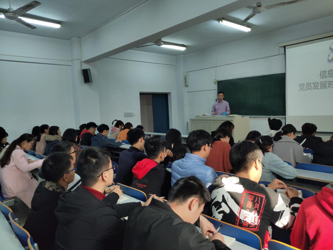 2018年11月8日,院长杜根远为我院55期党员发展对象在IT大合堂做了题为《坚定信仰、不忘初心、争做信息产业人才》的专题党课。党总支副书记梁衡主持讲座。