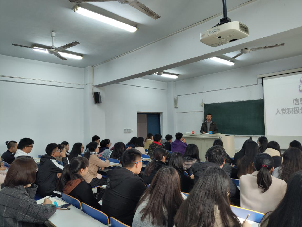 2018年11月6日,信息工程学院第20期分党校在IT大合堂举行,全体入党积极分子参加党课。院长杜根远为入党积极分子授课。