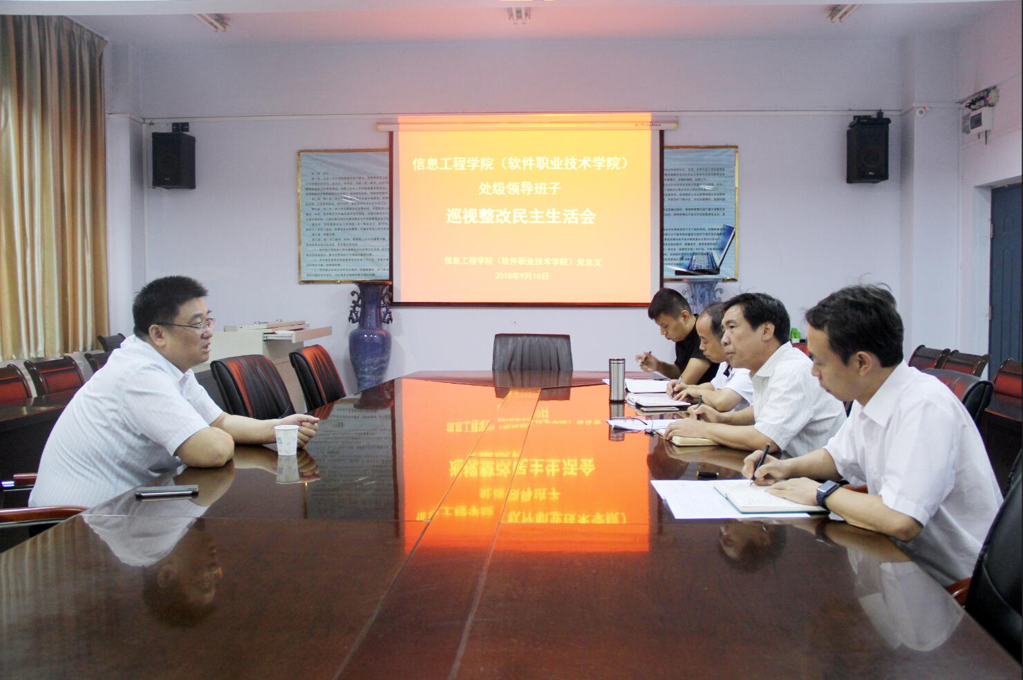 9月10日下午,信息工程学院领导班子巡视整改专题民主生活会在信工楼315会议室召开,校党委书记闫纪建作为联点领导参加会议并进行了指导点评,信息工程学院党总支书记张德喜主持会议。