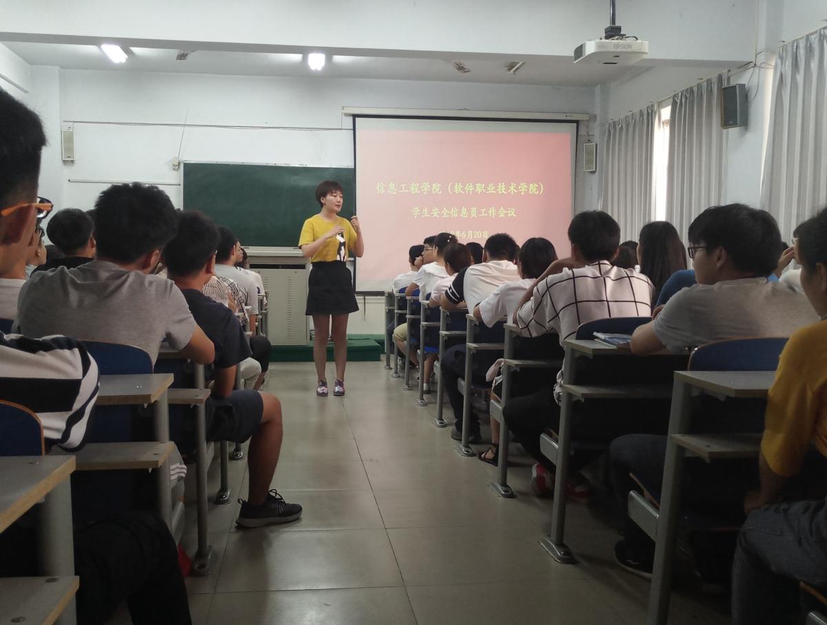 6月20日下午,我院召开安全信息员及寝室专干工作会议,安排部署期末考试期间学生安全工作,学院团总支副书记朱晓婷主持会议。