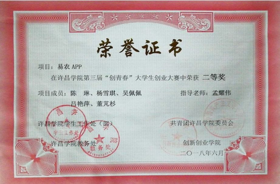 由共青团许昌学院委员会、许昌学院教务处、学生工作处、创新创业学院共同举办的许昌学院第三届“创青春”大学生创业大赛于2018年4月21日如期举行,众多优秀项目经过激烈的评选,学校相关部门给予高度重视,其中信息工程学院(软件职业技术学院)的学生们踊跃参与,最终取得了优异的成绩,分别获得一等奖一项,二等奖一项。