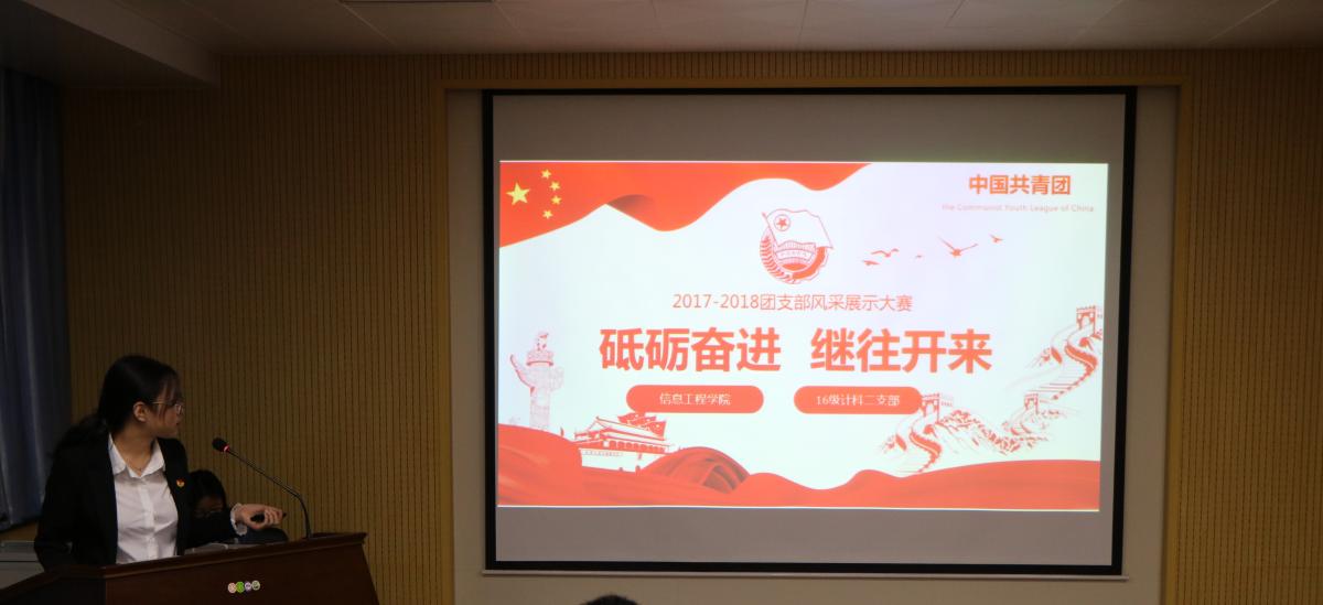 本次比赛中主要以各个优秀支部的团支书上台演讲PPT以及多媒体展示的形式来进行。在初赛之前,双方各选出了四个优秀支部,共有八组,为了公平竞争,以穿插的形式上台讲。比赛开始,由食品学院开始展示,各支部代表运用PPT、视频的精彩展示与讲解向我们展现了一个积极向上的班集体,更让大家看到了一个认真负责的团支书。接着陆续看到信工(软件)学院四个支部的风采展示,他们分别从思想引领、组织建设、班子建设等方面向大家详细展示支部的面貌,接着,八个支部展示完毕,评委们进行打分并给出指导性意见和建议,整理员整理后公布了支部的成绩。最后我院两个支部在本次初赛中脱颖而出,他们分别:2015级数字媒体技术(游戏开发方向)一支部、2016级计算机科学与技术二支部。