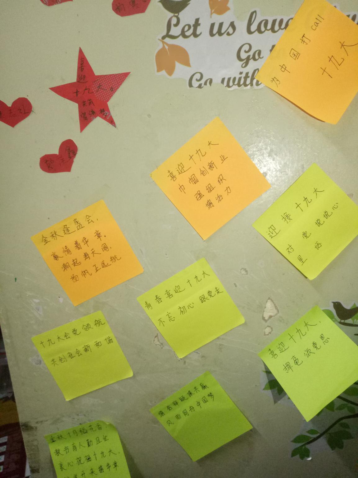 我院组织开展“十九大进寝室”活动,以“砥砺奋进的五年”为主题,通过宿舍文化建设,激励全体同学坚定中国特色社会主义道路自信、理论自信、制度自信、文化自信,振奋精神、砥砺奋进、再接再厉。