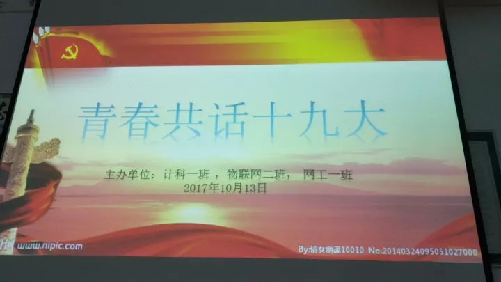 10月13日中午12点30分,信息工程学院(软件职业技术学院)17级网络工程一班与物联网二班计算机科学与技术一班合作,在C楼105教室共同举办了以“青春共话十九大”为主题的团日活动。