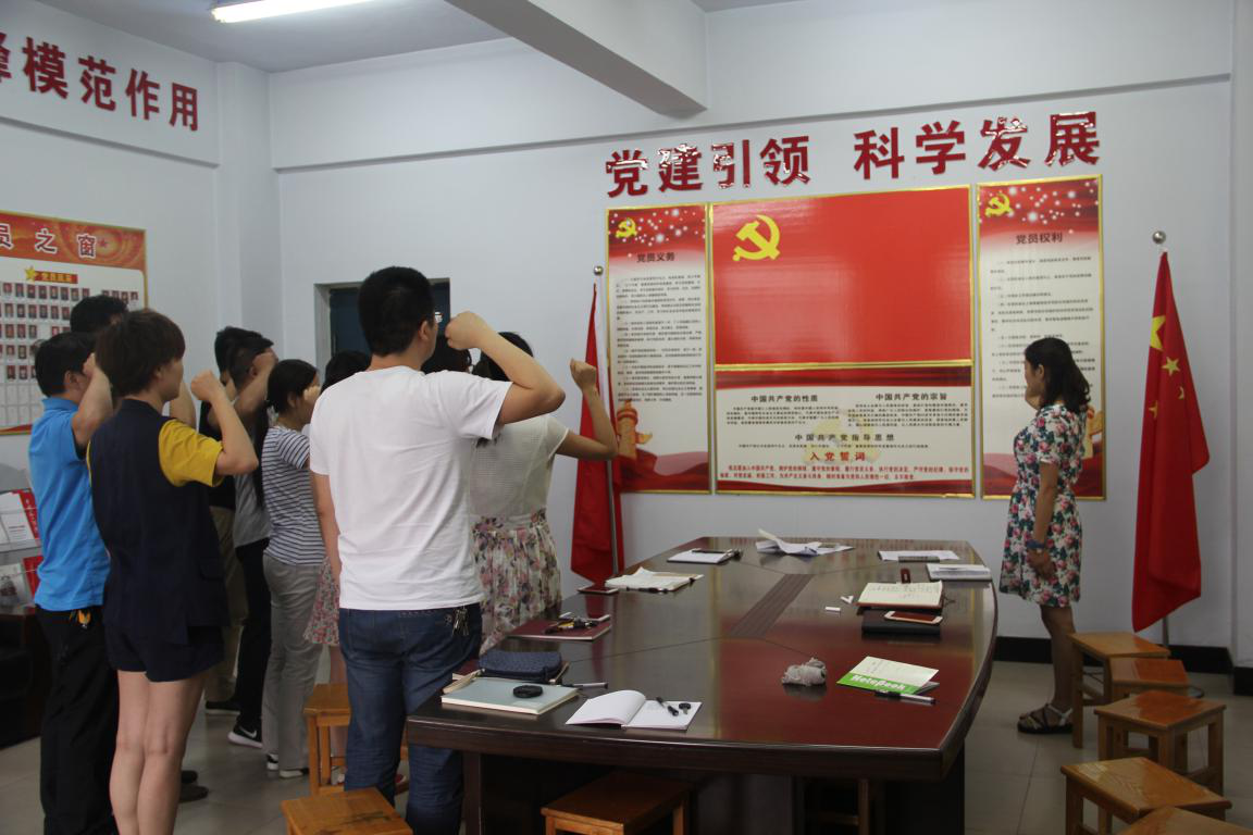 为进一步引导广大党员自觉加强党性教育,增强党员意识,强化党性观念,进一步深化“两学一做”学习教育,会后,在各党支部书记的主持下,全体党员重温了入党誓词。