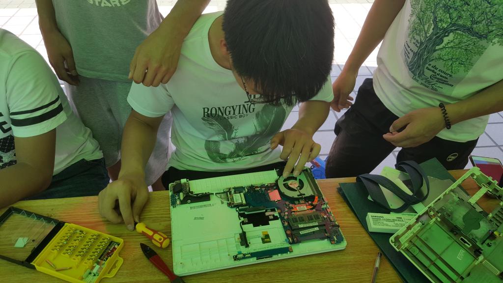 上午九点,维修队成员来到维修点开始进行工具检查和座椅摆放等前期工作。此次义务维修主要服务项目为:解决电脑卡慢问题、死机蓝屏问题和网络问题。在活动一开始就吸引很多同学前来询问。随着时间的推移,活动现场气氛越来越融洽,维修员们都忙的不亦乐乎。他们挥洒着热情、倾注着努力,更有部分干事废寝忘食,即使到了换班的时间也依旧在摊位前帮忙。为了防止带过来维修的电脑再次出现相同的问题,干事们还向他们讲述维修知识并且还带领他们一起参与维修。下午三点,维修队的成员们来到了信工楼311,进行院系废机器再利用改造工作,废弃电脑8台,经修复后可正常使用3台。