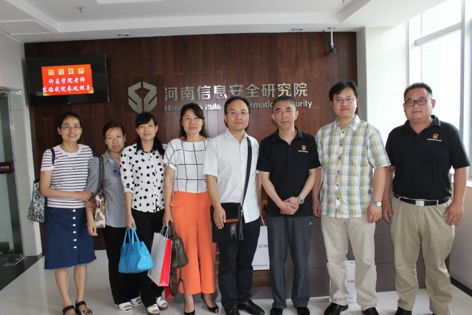 5月24日下午,信息工程学院平源副院长和网络工程系全体老师一行6人应邀到河南省信息安全研究院考察调研。信息安全研究院戴青院长等热情接待,并就国家在信息安全领域的政策和河南省信息安全研究院的发展和未来5年规划进行了详细介绍,然后带领大家参观了研究院最新研发的产品和网络安全实验室,体验了自主可控计算机的性能与实际应用,了解了网络安全产品的现状及未来发展方向。