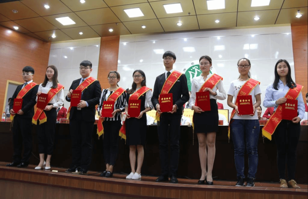 5月4日下午,许昌学院2016-2017学年学生工作暨共青团工作总结表彰大会在学术报告厅隆重举行。信息工程学院学生工作和共青团工作喜获佳绩。信息工程学院团总支学生会荣获许昌学院“五四红旗团总支”“优秀二级分会”两项荣誉称号;王晓霞老师获得 “优秀辅导员”称号,朱晓婷老师和席松杰同学分别被评为”学雷锋先进个人“称号,郭天泽同学荣获”十佳文明标兵“称号,谢宇慧同学荣获百星争艳领航之星-“自强之星”称号。