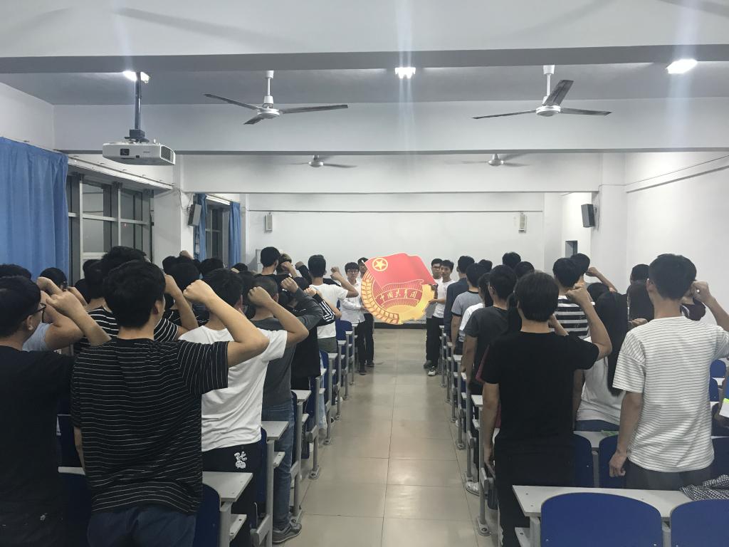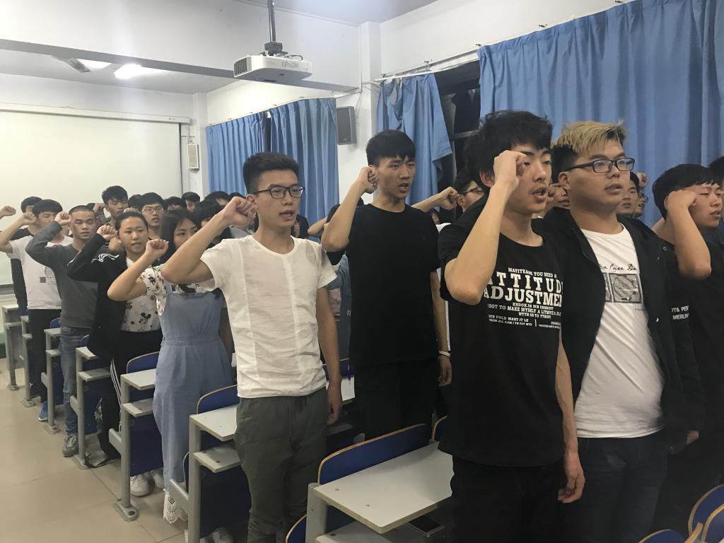 仪式伊始,团员们佩戴团徽整齐列队,在齐唱团歌之后,观看了中国共青团团史纪录片,重温了共青团那段热血光辉的岁月。随后团员们举起右拳,面向团旗庄严宣誓,重新感受入团仪式的庄严与光荣。宣誓仪式上,团总支副书记朱晓婷老师表态发言,号召全院团员青年永葆共青团组织的政治性、先进性、群众性,不忘初心跟党走,刻苦学习,努力提升自我,争当优秀共青团员。
