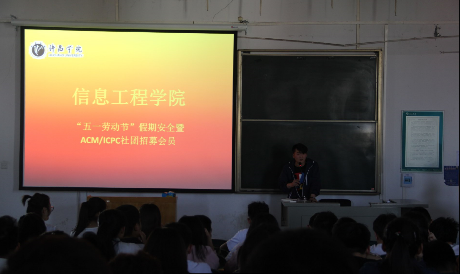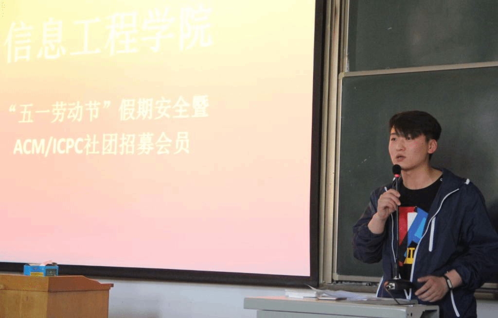 我院自2012年起,开始参与和ACM/ICPC相类似的蓝桥杯软件大赛,并取得不错的成绩,为进一步提高我院学生对ACM/ICPC国际大学生程序设计竞赛的认识,培养学生对程序设计的兴趣, 为编程爱好者提供一个交流的平台,同时蓝桥杯比赛、ACM/ICPC储备人才,我院决定成立ACM/ICPC社团。4月28日下午,我院团总支学生会学生会主席郭天泽为成立ACM/ICPC社团对2016级全体本科学生做了宣传动员工作。