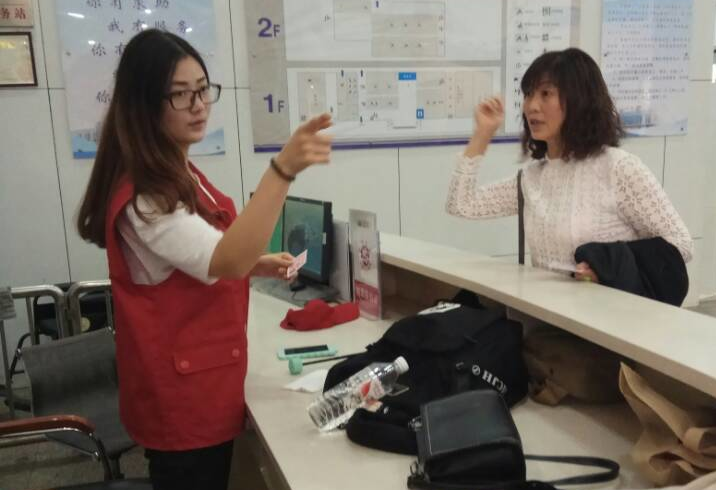 上午8:30,志愿者们到达目的地后和火车站工作人员进行了工作接洽,正式开展服务。等到有旅客下车的时候,我们的志愿者就会向他们微笑致意,并亲切的去询问他们是否需要帮助,需要帮助的我们会把他们拿的行李包和重物发在我们的推车上,推到他们指定的地点,同时和旅客做热情的交流,给他们说下许昌的美丽,等把东西推到他们指定的地点后,我们的志愿者微笑着给他们说再见。志愿者们热情的服务赢得了受助游客的一致好评。