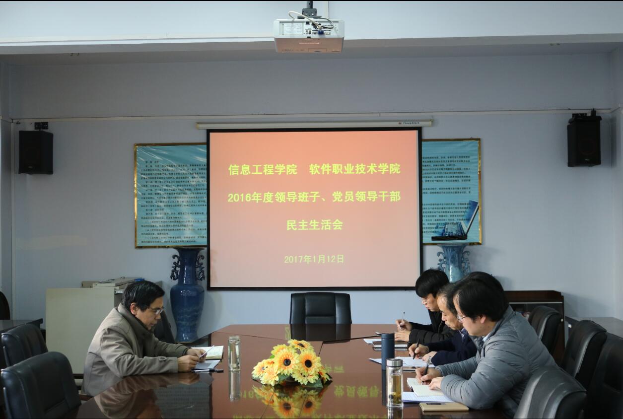 根据《许昌学院2016年度处级领导班子、党员领导干部民主生活会实施方案》要求,2017年1月12日下午14:30,信息工程学院(软件职业技术学院)领导班子以学习贯彻党的十八届六中全会精神为主题,围绕“两学一做”学习教育要求,在信息工程学院315会议室召开了2016年度民主生活会。院领导班子和成员重点对照《关于新形势下党内政治生活的若干准则》和《中国共产党党内监督条例》,对照省委巡视组巡视反馈意见,结合思想和工作实际,紧密联系班子建设和个人党性修养,在理想信念、政治纪律和政治规矩、作风、担当作为、组织生活和落实全面从严治党责任六方面深入查找存在的问题,剖析问题产生的根源,明确了今后的努力方向和整改措施。