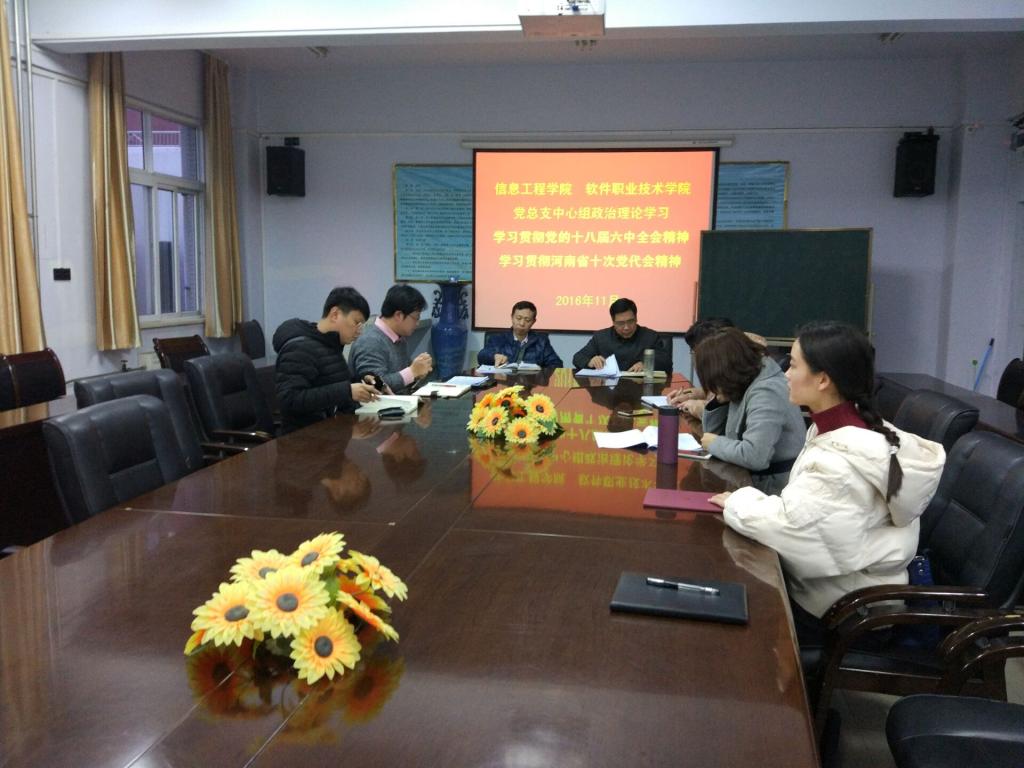 11月23日下午,党总支在315会议室召开学习会,专题学习了“党的十八届六中全会”及“省第十次党代会”精神。全体党员参加学习,党总支书记张德喜主持学习会。