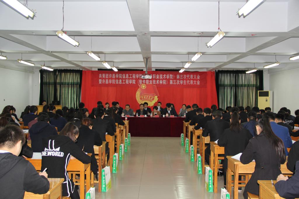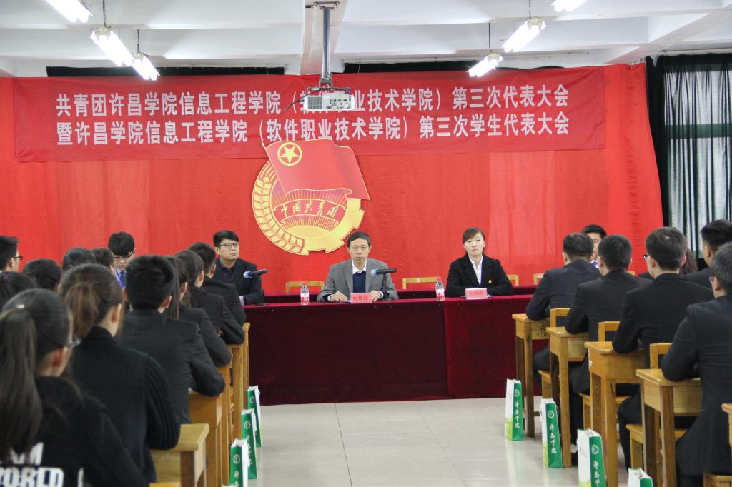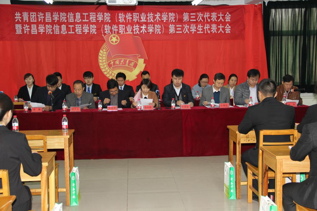 2016年10月30日,共青团许昌学院信息工程学院(软件职业技术学院)第三次代表大会暨许昌学院信息工程学院(软件职业技术学院)第三次学生代表大会在信工楼311报告厅召开。许昌学院团委书记谢依楠、团委副书记史若延,信息工程学院(软件职业技术学院)党总支书记张德喜、院长杜根远、副书记梁衡、副院长胡子义、平源、工会委员徐尽同志及部分兄弟学院的团总支负责人出席了本次会议。95名来自信息工程学院(软件职业技术学院)各个团支部和班级的代表参加了会议。本次会议由信息工程学院(软件职业技术学院)党总支副书记梁衡同志主持。