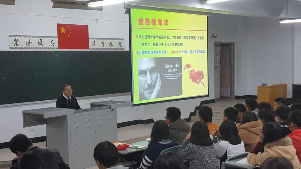 在创新驱动发展战略和“大众创业、万众创新”的时代强音下,10月27日晚,我院邀请校特聘教授,校创新创业学院创业导师、专家顾问朱贵良教授在c合2教室做了主题为“创新走近梦想”主题讲座,2016级全体新生聆听了讲座。院党总支副书记梁衡主持讲座。