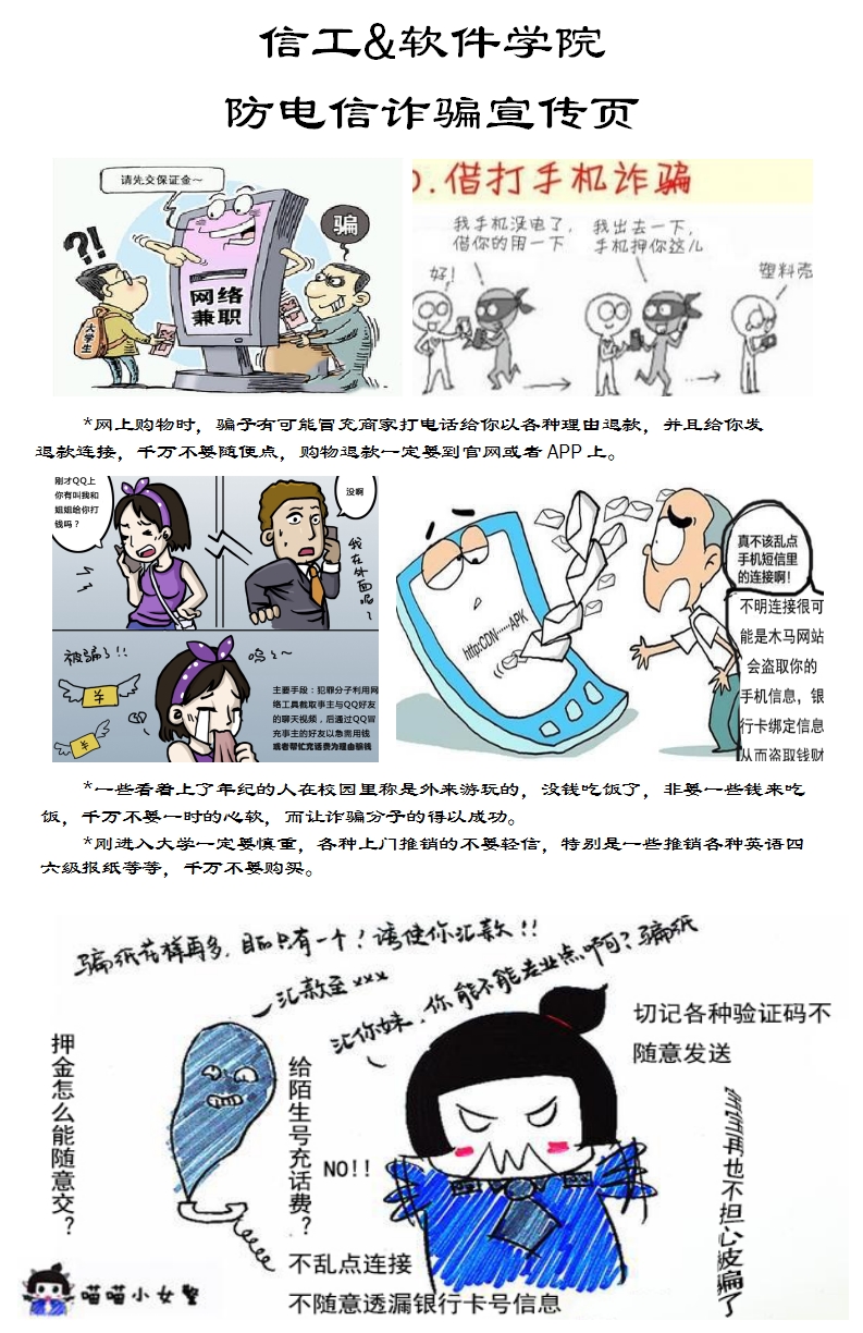 此外,为更好的帮助新生预防电信诈骗,我院团学组织还制作了精美的《预防电信诈骗宣传页》。