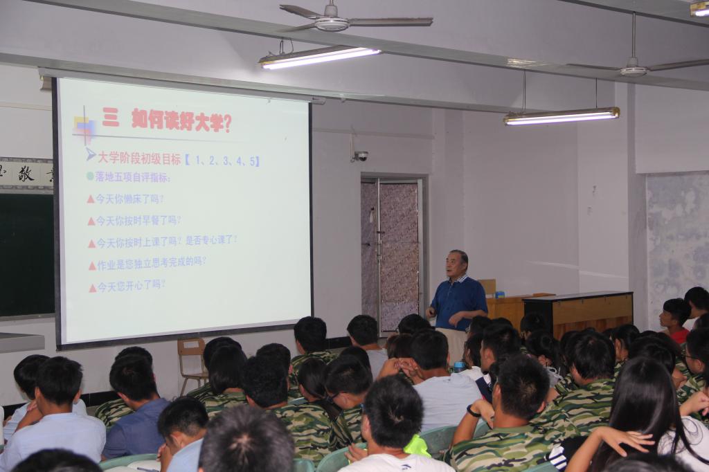 讲座中,朱教授首先从“什么是大学”这个问题开篇,向大家阐述了大学的功能,然后通过对比大学和高中的差别,帮助新生认清了大学的内涵和在大学期间面临的任务,最后,通过解读“大学怎么上”,指出大学是人生发展的关键阶段,是集中精力成长,决定未来最重要的时期,也是最艰苦,最容易迷失方向的时期,朱教授叮嘱16级新生一定要在大学这个人生的重要转折期,牢牢把握正确的人生方向,定准定好目标,注重个人的道德修养,自觉培养提高情商,不断完善自我,树立正确三观,要通过“明确一个目标、消化两个储备、践行双三能力、四个自我严控、落地五项自评”去踏好新新起点、完美新征程、抱负新生活。最后,朱教授将“寡德何以履地、无知岂敢仰天”两句格言赠与16级同学共勉。