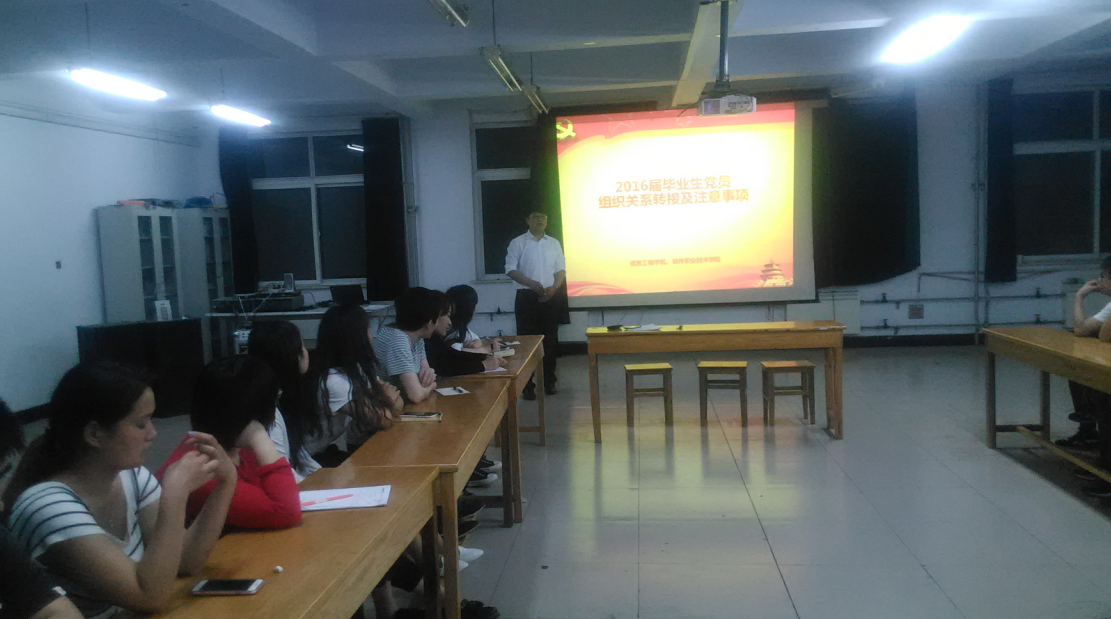 5月5日晚,信息工程学院(软件职业技术学院)2016届毕业生党员会议在315会议室召开,党总支副书记梁衡主持本次会议,针对毕业生建言献策、文明离校等相关活动和党组织转接等工作做了具体说明安排。各学生党支部书记及全体毕业生党员参加了本次会议。