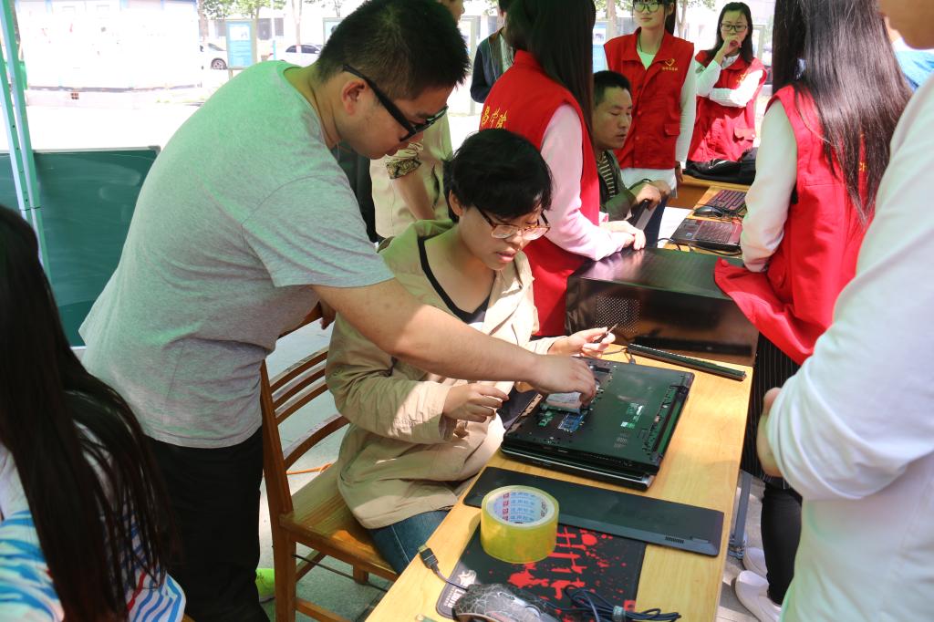 2016年4月24号,信息工程学院编外雷锋连联合计算机协会在创新创业楼前开展计算机义务维修活动,为许昌学院的同学提供免费的计算机故障检测,清灰,安装系统等服务。