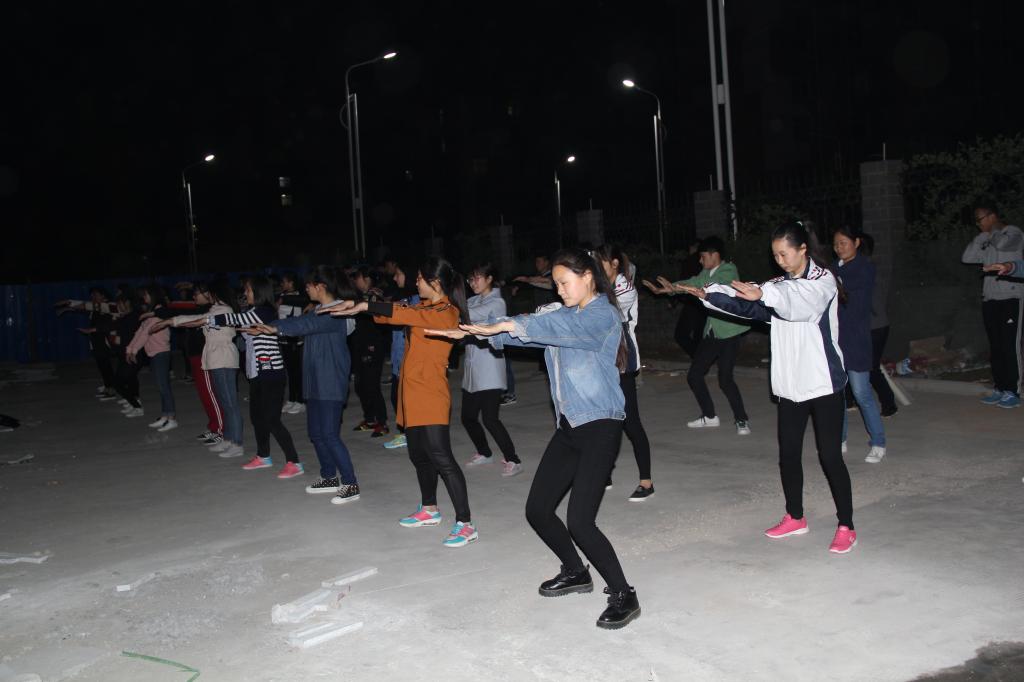 3月22日是我院参加武术操的同学第一次训练的日子,在一天的学习结束后,来自信工&软件学院的同学们没有忘记自己的使命。完成学习任务后,在晚上9:30的时候,来自不同专业的五十多名运动员集聚在了创新创业楼前面的空地上,排列出了整齐的队伍,然后在大二学长学姐的带领下,运动员们开始了紧张而又有趣的武术操训练,在富有节奏的口令下不断变换着体位,整齐划一,看上去是那么和谐美丽。橘黄色的灯光照射在一个个富有青春活力的脸庞上,荡漾起一张张充满朝气的笑脸。