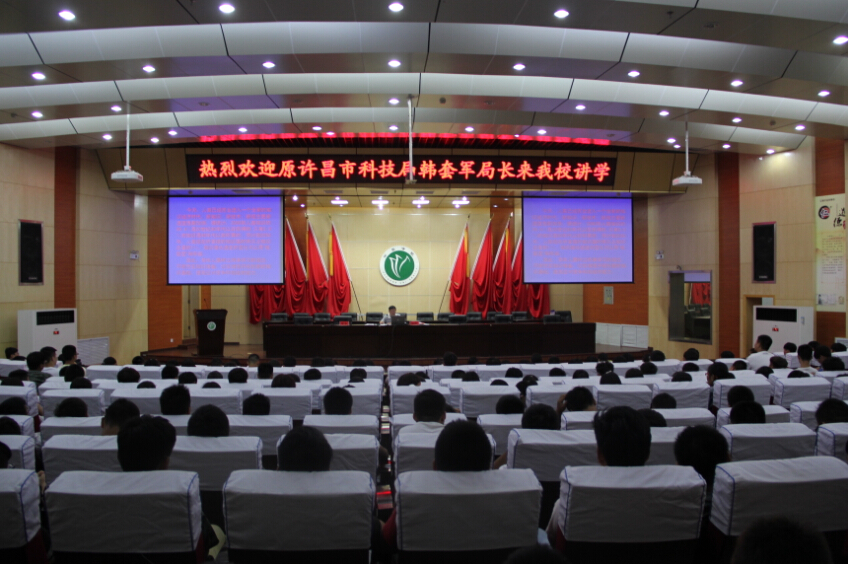 为更好的帮助15级新生在大学生涯中树立远大理想,成为国家社会的栋梁之材,9月18日晚七点,我院特邀原许昌市科技局韩套军局长在校学术报告厅以“立志成才、报效祖国”为主题的做了专场讲座。党总支副书记翟广辉、各年级辅导员和464名大一新生共同聆听了讲座。讲座由党总支副书记翟广辉主持。