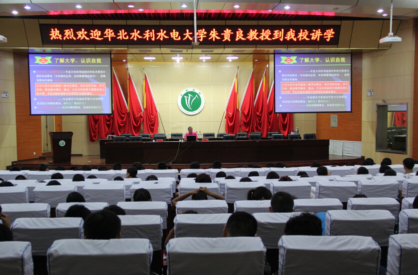 “一个民族需要一群仰望星空的人,只关注脚下的民族是没有前途的民族。” 朱教授首先用德国著名哲学家黑格尔的名言开篇,阐释了大学生应有的人生观。朱教授指出:大学是认识、充实、成熟自我、丰富、实现理想、挺进仰望星空的最关键阶段,同时也是容易迷失方向的一个阶段,现在的大学生因为受到各种因素的影响,三观出现偏差,迷失自我、失去方向。要想清晰的认识这些问题的根源并加以解决,就必须从了解大学、了解自我开始,必须懂得只有认识了自我,才能不断充实自我;只有不断充实自我,才能逐渐成熟自我;只有一个成熟地自我,才能挑起社会、历史和家庭的责任,才能成长为仰望星空的人。那么作为一个大学生具体应该怎么做,朱教授也给出自己的建议:1、正确定位人生目标;2、要提高自己的情商;3、正确认识贫穷、懂得感恩;4、坚守诚信。在讲到诚信问题时,朱教授分享了自己的人生格言:本本分分做人,实实在在做事。同时他赠言新生:寡德何能履地,无知岂敢仰天。最后,朱教授勉励大家:在人生的道路上,又欢乐,也会有痛苦;有坦途,也会有坎坷;但是任何时候,我们都不能忘记肩负的伟大历史责任与民族责任;不能忘记肩负的社会与家庭责任。只要我们心向光明,扶仰正义,勤奋学习,努力工作,尽管每个人将来对人类、对社会的贡献有大小差异,但是只要尽到了最大努力,你们的名字就会和许多英雄一样伟大,就会与历史隽永!