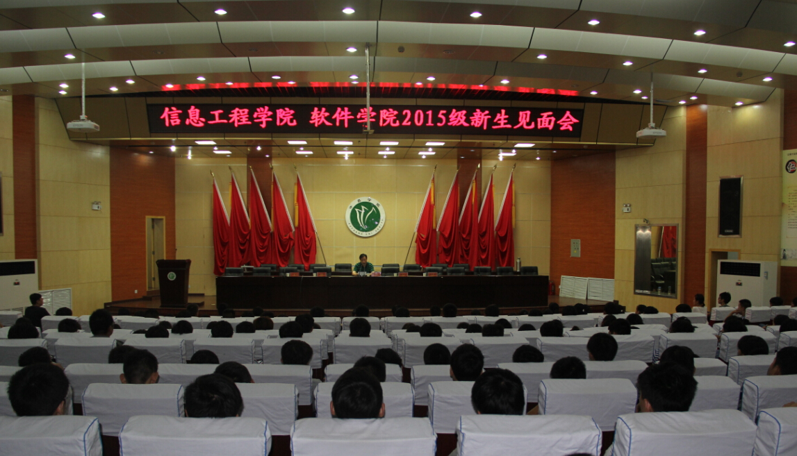 9月14日晚七点,信息工程学院、软件职业技术学院2015级新生见面会在校学术报告厅隆重召开。院长张志立、党总支副书记翟广辉、副院长胡子义、副院长冯战申,以及团总支书记、办公室主任、新生辅导员、15级464名大一新生出席了见面会。会议由团总支书记梁衡主持。