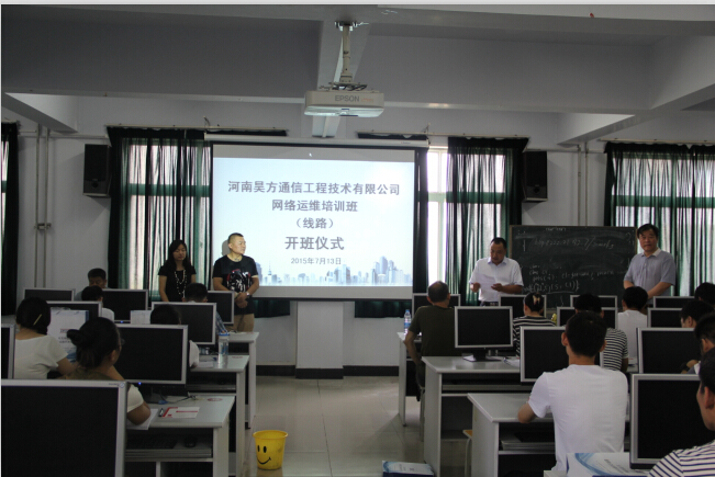 本次网络运维人员培训班分为线路和基站两个方向。7月13日上午8时30分,培训班开班仪式分别在信工411、502两个机房举行。许昌市魏都区科技局、中通协培训部、河南昊方通信工程技术有限公司和我院相关领导出席了开班仪式。
