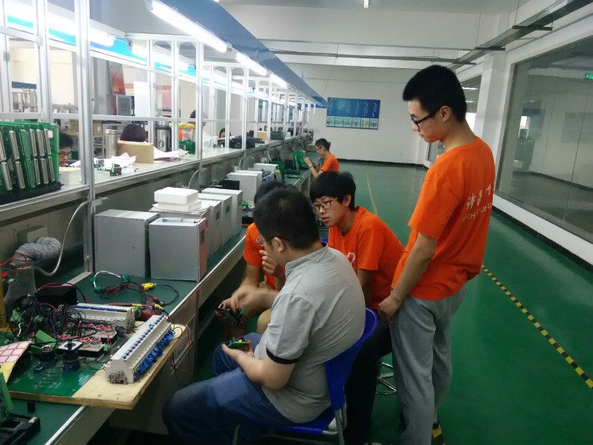 河南森尼瑞电气有限公司是一家以智能变配电解决方案、能耗监测、能耗审计、合同能源化管理、行业整体节能方案设计、项目施工为主要业务的高科技公司。队员们一来到森尼瑞公司,便受到总经理文建英女士和全体员工的热烈欢迎。实习伊始,公司工程师张亚红女士带领全体队员们对企业进行了参观,在产品展厅,她重点介绍了智能配电系统的工作流程,DP系列智能监控装置的应用,智能仪表的生产等专业知识,并回答了队员们的提问。参观过后,公司负责人召集全体队员召开工作培训会,会上公司总工程师汪洪华根据公司岗位的实际需求和队员们的基本情况,分别将实践队员分配到了生产部车间的电路板设计制作区、产品检测区等部门,并为每三位队员指定了一名技术员给予必要的技术指导。经过几天的顶岗见习,队员们逐渐熟悉了工作流程:每天乘坐公司员工专车上班、打开签到、工作前会议、认真工作、中午在员工食堂就餐、下午五点工作总结、下班……,队员们俨然已是一名正式的公司员工。在工作中,队员们态度谦虚、工作敬业、表现积极、专业过硬,用实际行动表达着对工作的热爱,凭借许昌学院学子优良的综合素质赢得了公司领导和员工的一致好评。