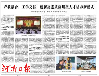 长期以来,许昌学院信息工程学院紧紧围绕高素质应用型人才培养,坚持“产教融合、工学交替”的办学理念,实施“校企联姻工程”,拓展校企合作渠道,构筑专业建设、人才培养和科技创新“三大平台”,人才培养质量和办学实力明显提升。