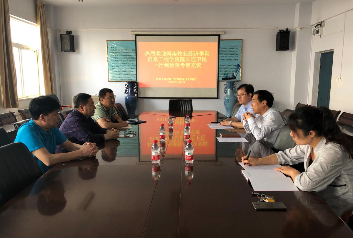 5月17日,河南牧业经济学院信息工程学院连卫民院长等一行到我院考察交流工作。书记张德喜、副院长平源热情接待了客人,相关专业负责人参加了座谈交流。