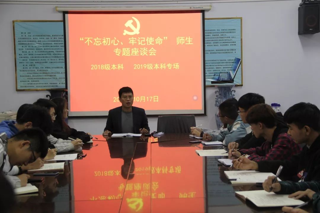 为进一步推动“不忘初心、牢记使命”主题教育扎实开展,着力解决学生最关心最直接最现实的利益问题,10月11日——17日,我院分不同年级举行了三场“不忘初心、牢记使命”主题教育征求意见建议座谈会,院党总支副书记梁衡与来自学院各年级学生代表、学生党员120余名围坐一堂,听取对学校学院发展的意见和建议。