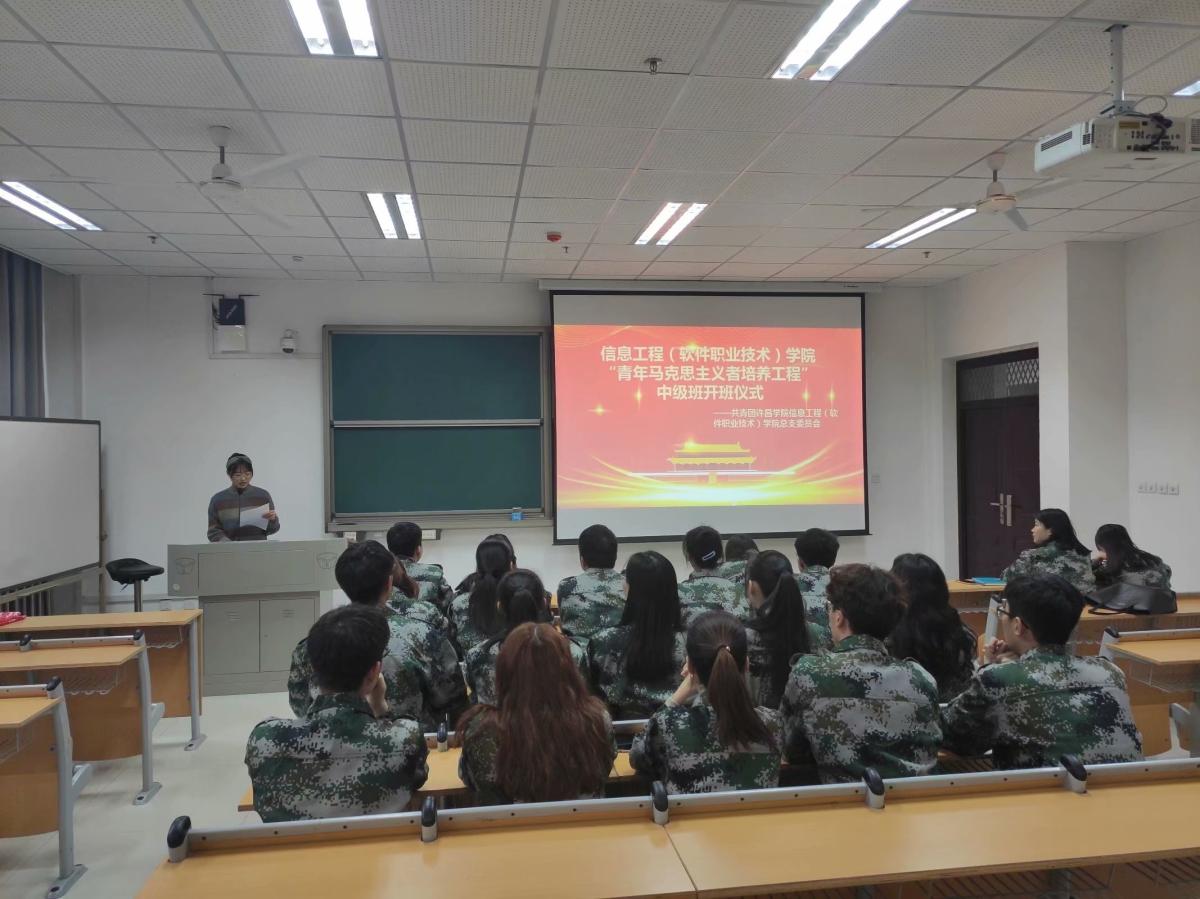 会议宣读了《信息工程学院 软件职业技术学院关于举办“青年马克思主义者培养工程”培训班的通知》。随后“青年马克思主义工程中级培训班”成员分别就如何更好担负起青年马克思主义者的责任进行交流发言。