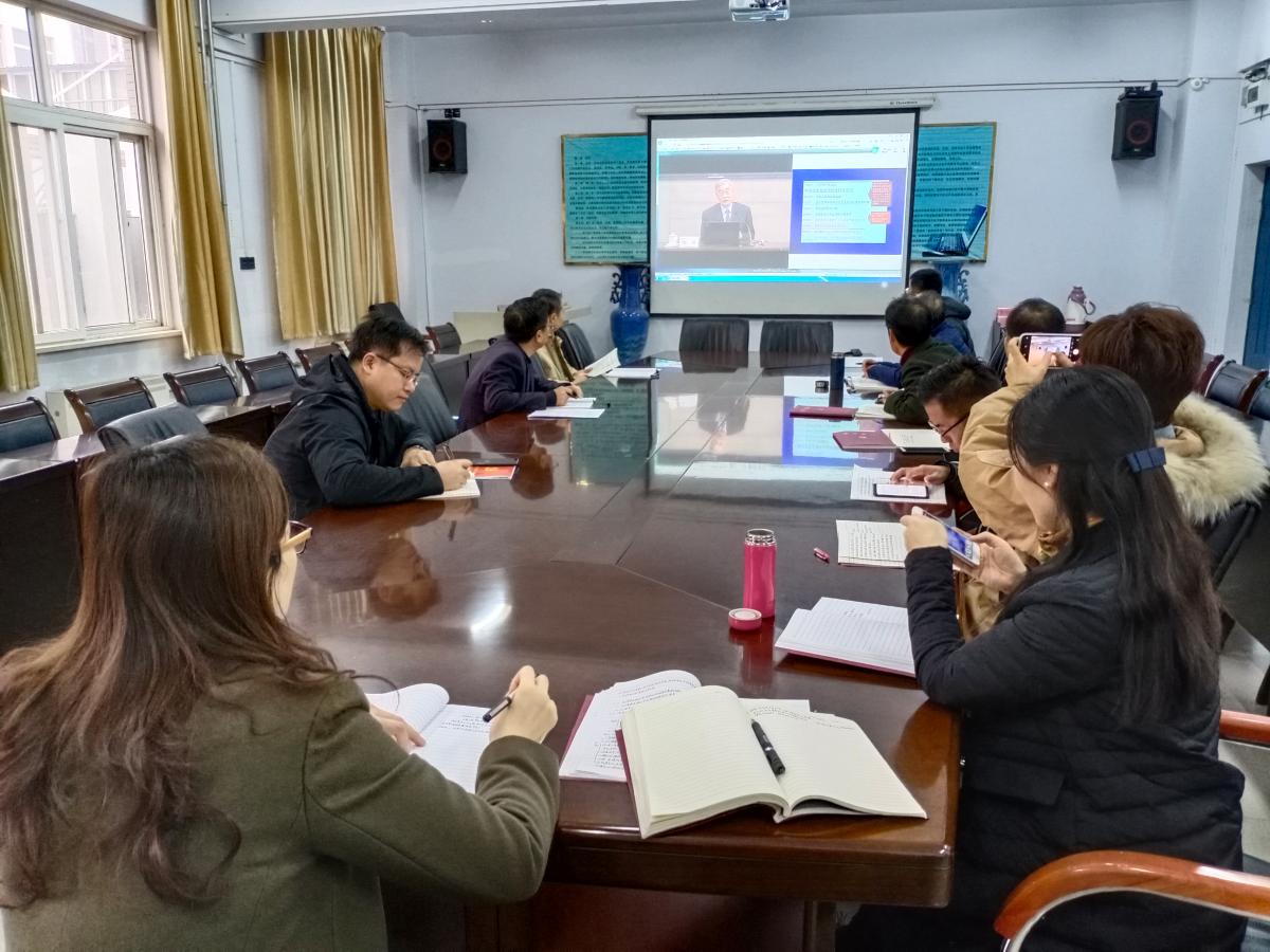 按照上级党组织要求,根据“不忘初心、牢记使命”主题教育学习安排,11月27日上午,我院党总支理论中心组学习成员、各支部书记在315会议室集中学习观看《党的十九届四中全会精神解读》专题讲座。