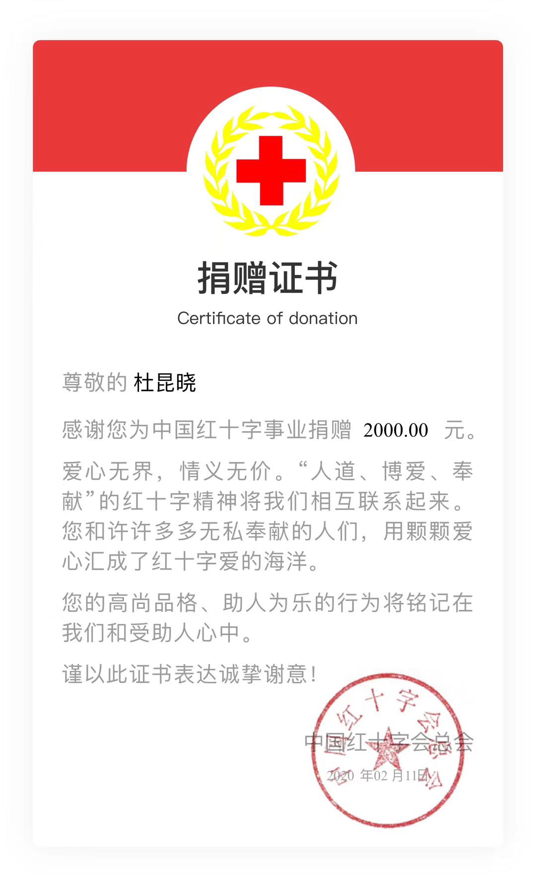 杜昆晓同志捐款助力抗击疫情先进事迹