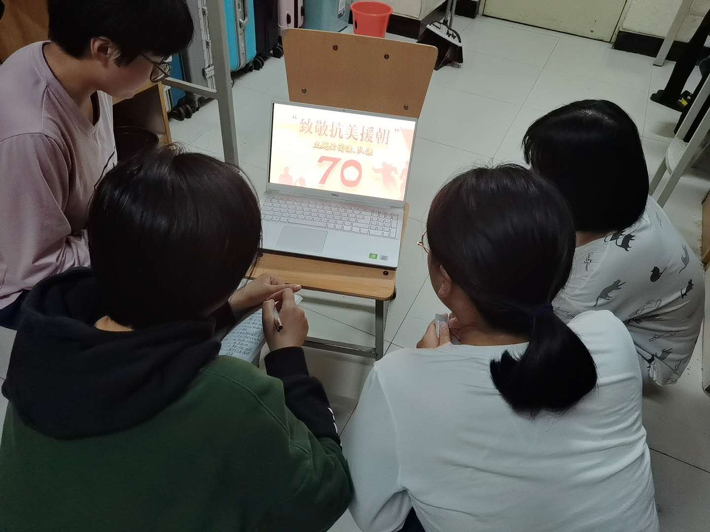 70年弹指一挥间,追思却从未远去。2020年10月25日是抗美援朝第七十个周年纪念日,为追思英雄,我院团委组织全体学生于19:30准时观看“致敬抗美援朝”主题云团课网络直播,本次直播主要以团小组和团日活动的形式组织观看。此次课程旨在让同学们敬畏抗美援朝英雄,并更好珍惜当下的生活。