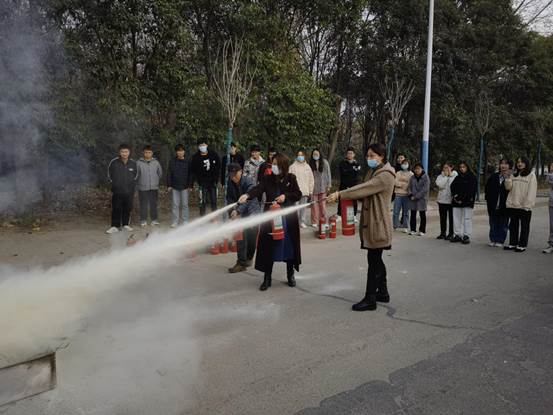 此次演练培训针对学院消防工作特点,既有火灾隐患检查、火灾应急处置、灭火方式方法等安全管理工作的理论指导,又有演练实践,并特别邀请河南省消防协会杜教员进行指导。全体参训人员在艺术楼后广场进行了灭火器使用演练。