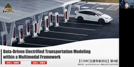 2022年3月27日上午,应我院长江学者于雷教授邀请,美国犹他大学土木与环境工程系副教授刘晓玥作题为“Data-Driven Electrified Transportation Modeling within a Multimodal Framework(多模型结构下数据驱动的电气化交通建模)”的专题讲座。讲座采用腾讯会议线上方式,同时进行微信直播,由我院范爱华博士主持。我院交通专业的全体学生和部分老师,其他院系的部分师生,于雷教授在北京交通大学的团队成员,以及交通行业的相关学者参加了讲座。