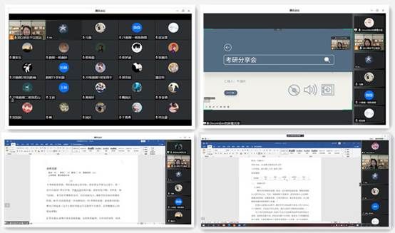 考取安徽大学计算机科学与技术学院研究生的牛国庆同学分享了他的考研经验和研究生学习情况。他结合自己的考研时间规划、院校选择、复习安排、资料查找以及目前的研究生学习生活,和大家进行了深入交流。2022届毕业生中有5名同学考取了研究生,其中考取浙江理工大学的吉振东、考取青岛科技大学的谢培栋分别分享了自己考研复习经验。顺利拿到澳大利亚悉尼大学Offer、目前在北京光宇游戏有限公司就职的郝荦同学也在线上和学弟学妹互动,分享自己的学习和公司相关技术。