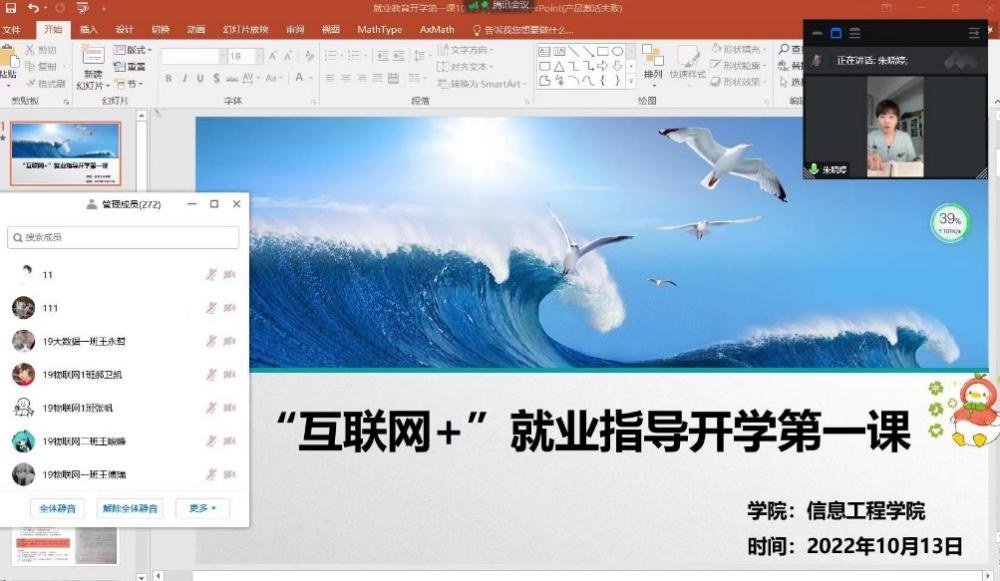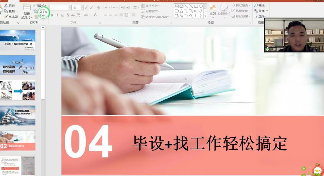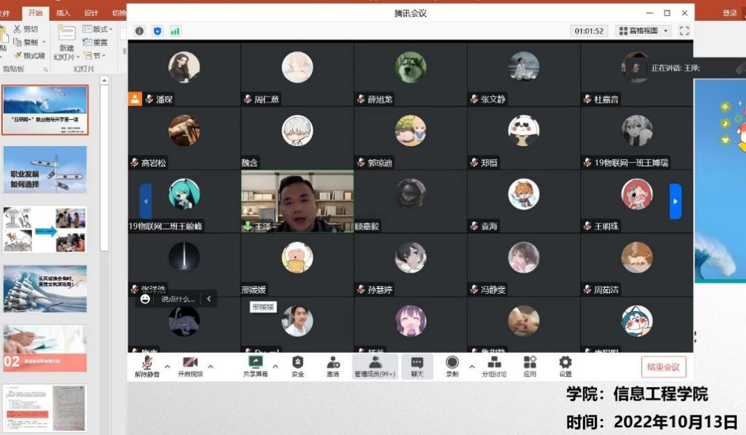 为更好地为2023届毕业生提供全方位、多角度的就业帮扶与指导,做好毕业生就业择业过程中的指南针,从而提高学生就业核心竞争力,我院于10月13日组织召开了2023届毕业生“互联网+”就业指导开学第一课线上讲座。党委副书记、团委书记、就业专干、毕业班辅导员及2023届全体毕业生参加讲座,院就业专干潘琛主持讲座。讲座还特别邀请了河南华杉信息技术有限公司技术总监王泽出席了本次就业指导讲座。