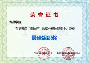 2022年11月12-13日,第五届“泰迪杯”数据分析技能赛落下帷幕,共计有来自全国249所高校1603支队伍报名参赛,包括哈尔滨工业大学、南开大学、国防科技大学、北京交通大学、西安交通大学等50多所国内知名高校。我院数据科学与大数据技术专业共组织参赛42名同学,组成14支队伍参与了本次竞赛,经过2天的鏖战,最终斩获一等奖6项,二等奖11项,三等奖3项,创历史最好成绩。同时,因比赛组织有序,赛事成绩优异,我校被授予“最佳组织奖”荣誉称号。