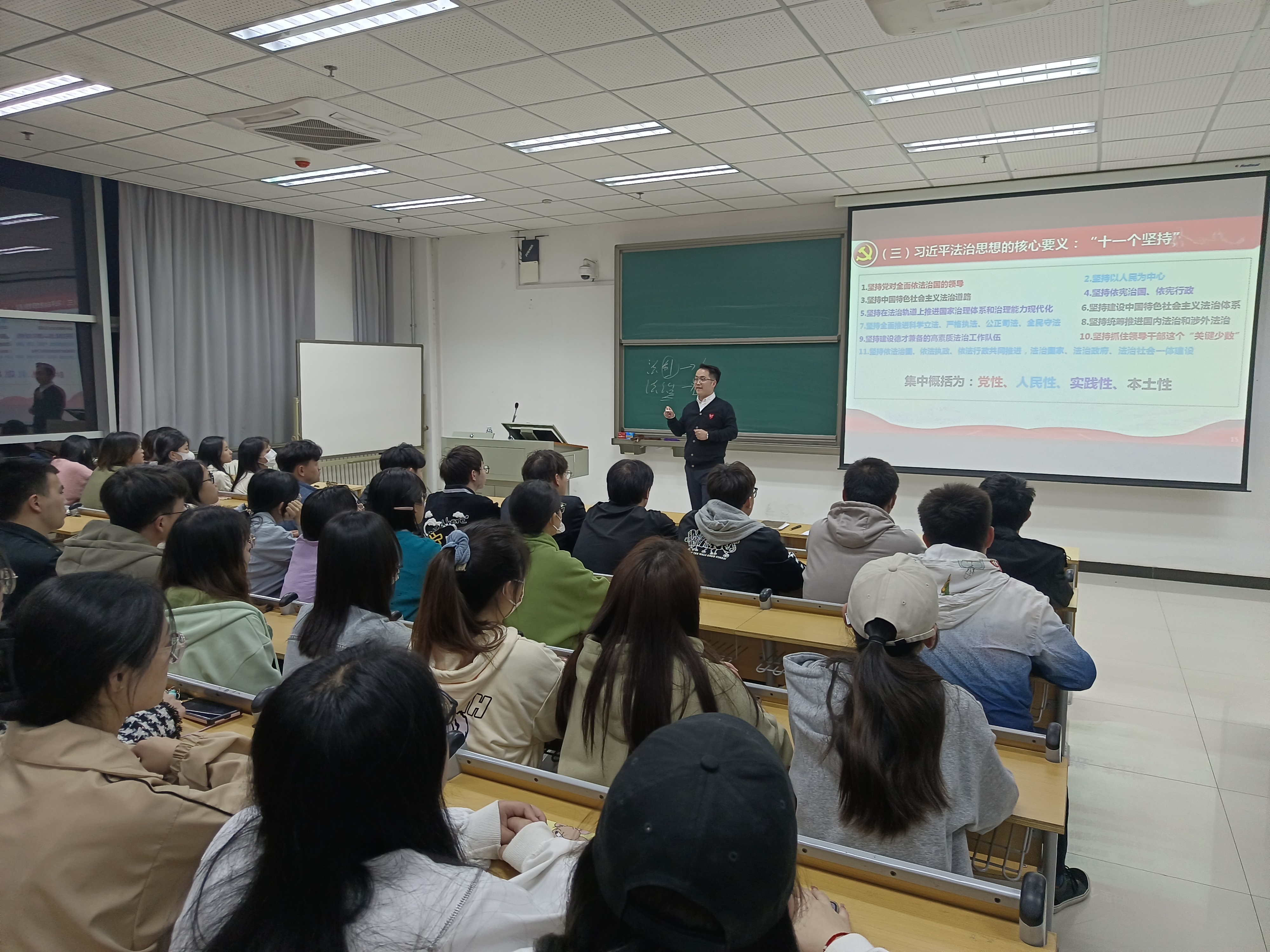 宣讲会上,孙敬良老师作了题为《贯彻习近平法治思想谱写中国式现代化法治体系新篇章——准确把握党的二十大关于法治中国新论述的生成逻辑和原创贡献》的报告,紧紧围绕“习近平法治思想的形成发展”、“习近平法治思想的生成逻辑”、“习近平法治思想的原创贡献”、“习近平法治思想的学习要求”四个方面,系统全面地解读了党的二十大报告中关于法治中国新论述的重要内容。孙老师的宣讲深入浅出,内涵丰富,逻辑严谨,使大家对习近平法治思想有了更深刻的了解,充分感受到了以习近平同志为核心的党中央对全面依法治国的高度重视。