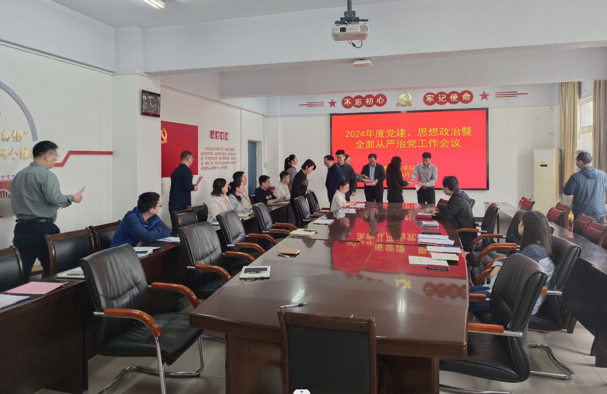 会议传达了学校2024年党建暨思想政治工作会议和全面从严治党会议精神。参会党员、科级干部向党委递交了廉洁自律承诺书。