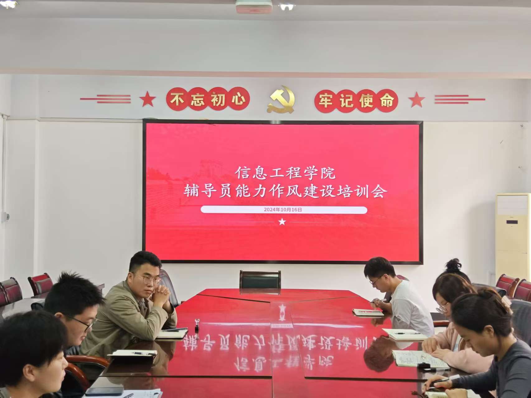 在全国高校教育改革不断深化的背景下,为进一步加强辅导员队伍能力作风建设, 10月16日上午,学院在信息工程学院楼315会议室召开辅导员能力作风建设培训会。全体辅导员参会,会议由学院党委副书记王晓霞主持。