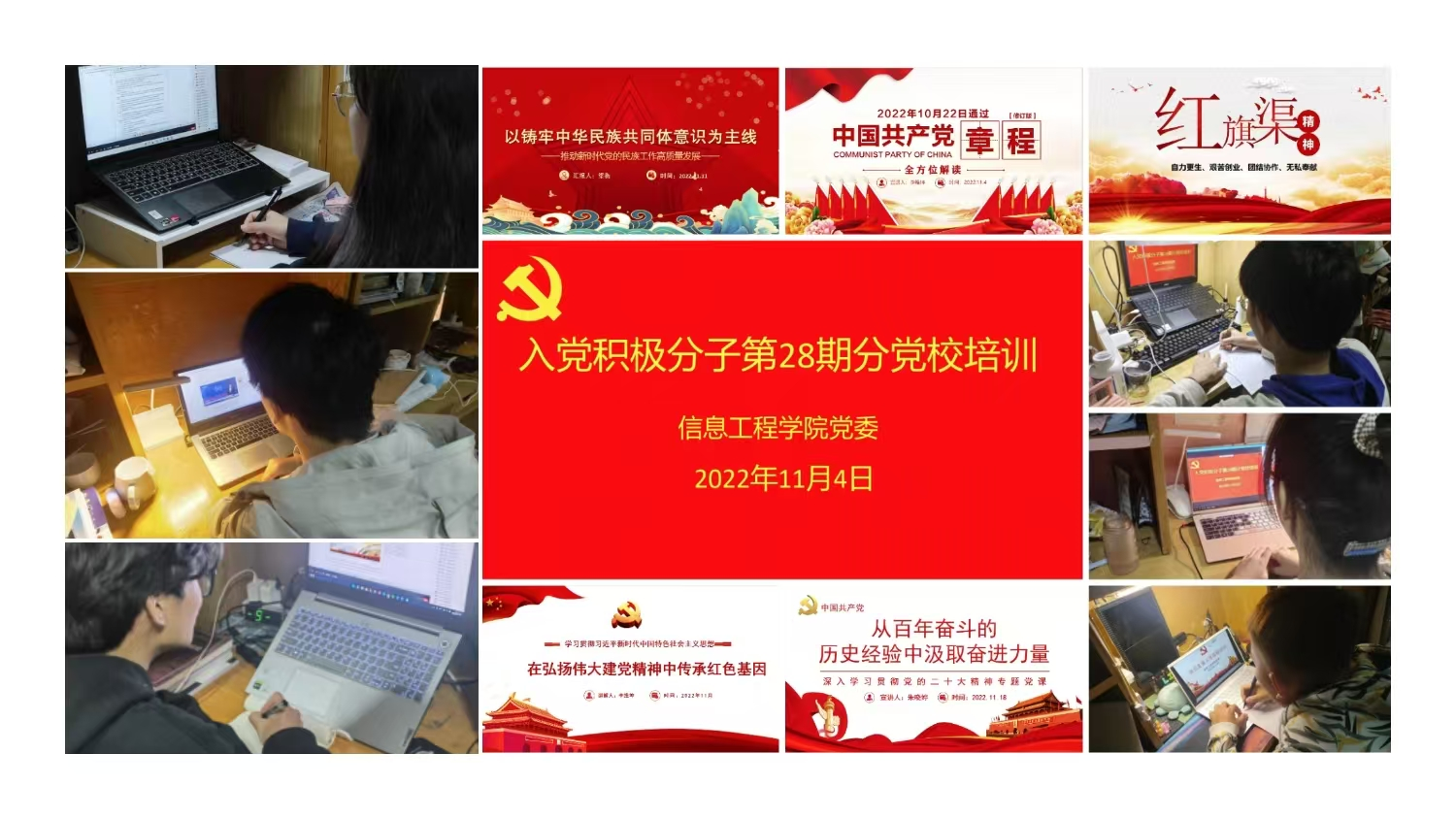 为贯彻落实《中国共产党发展党员工作细则》有关规定,从源头上严把党员发展“入口关”,教育引导入党积极分子端正入党动机,11月4日,我院分党校第28期入党积极分子培训班开班,共计110余名入党积极分子、学生干部参加培训。受疫情影响,培训以线上授课形式开展。