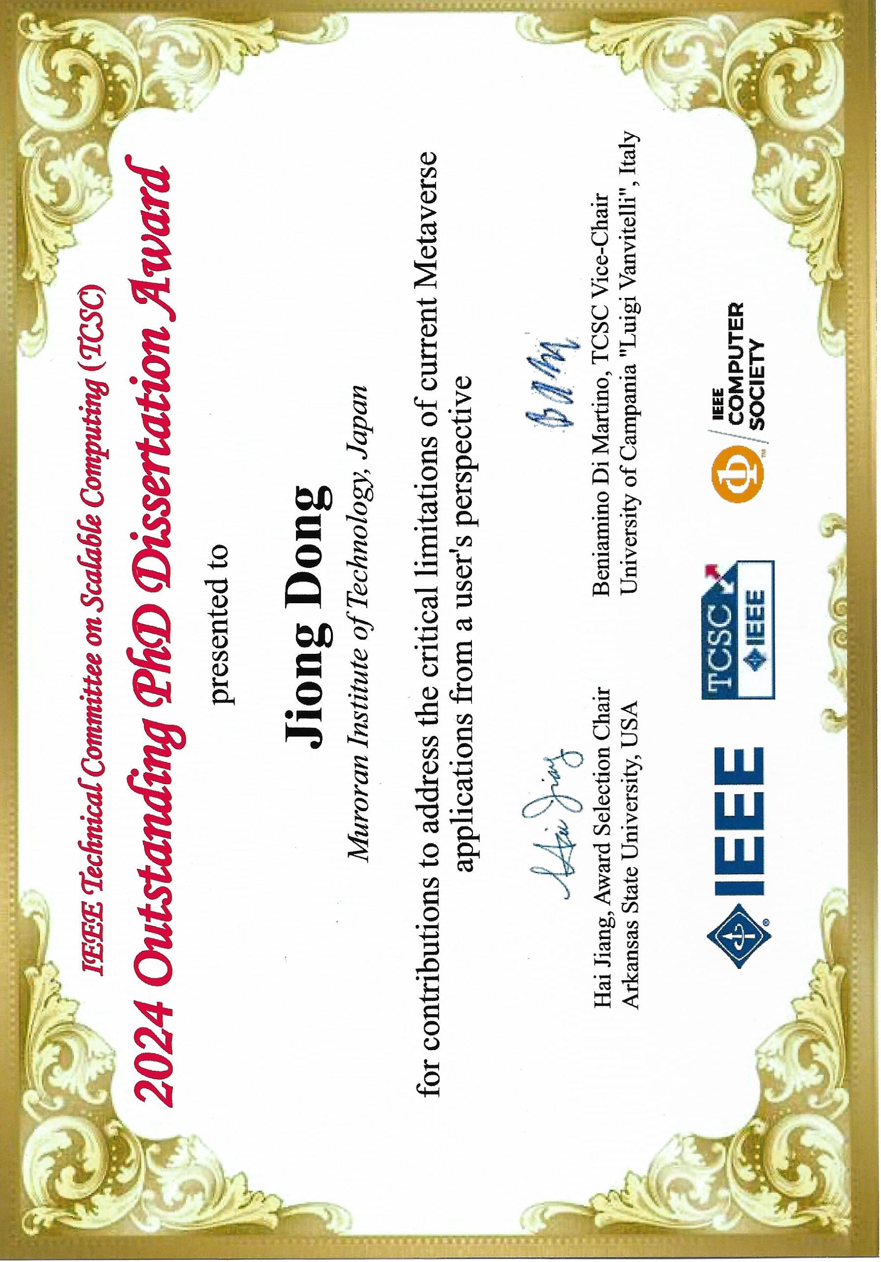 IEEE TCSC Outstanding PhD Dissertation Award专门表彰攻读博士期间在学术上做出突出贡献的博士学位获得者。每年将从全球遴选出4-6名在博士期间做出了突出贡献的青年学者,申请者必须在博士毕业两年以内才可以申请。根据《IEEE Technical Committee on Scalable Computing》的规定,经资格审查、同行评审、会议终评,2024年最终评选了来自全球的5位IEEE杰出博士学位论文奖获奖者。